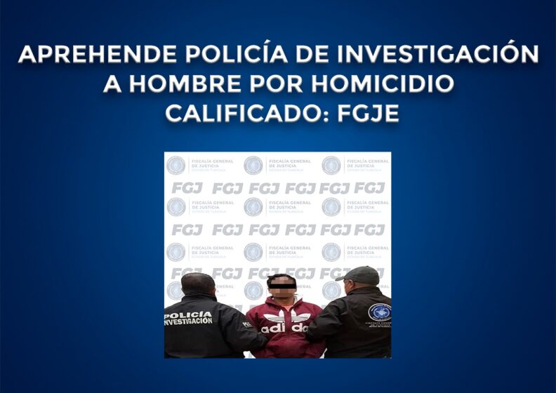 Elementos de la Policía de Investigación de la Fiscalía General de Justicia del Estado (FGJE) aprehendieron a Víctor N., por su probable responsabilidad en el delito de homicidio calificado.