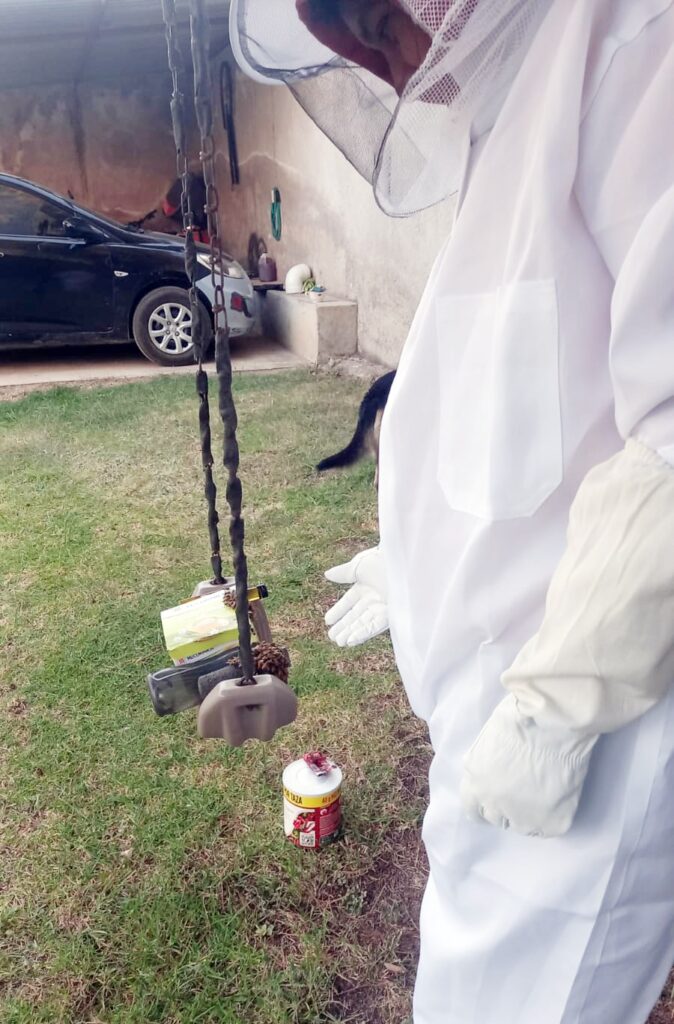 Con el equipo adecuado, personal de la dependencia municipal realizó labores para la reubicación del enjambre sin causarles afectaciones.