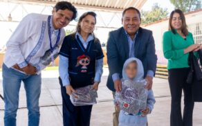 Javier Rivera Bonilla asiste a la entrega de uniformes escolares gratuitos en Apizaco