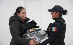 Rocío Meléndez entrega uniformes y equipo táctico a policías de Tlaltelulco