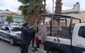 Retira Policía Vial de Apizaco objetos usados para apartar espacios en calles y banquetas