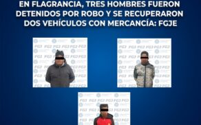 En flagrancia, tres hombres fueron detenidos por robo y se recuperaron dos vehículos con mercancía: FGJE