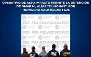 Operativo de alto impacto permite la detención de Omar N., alias “El Monas”, por homicidio calificado: FGJE