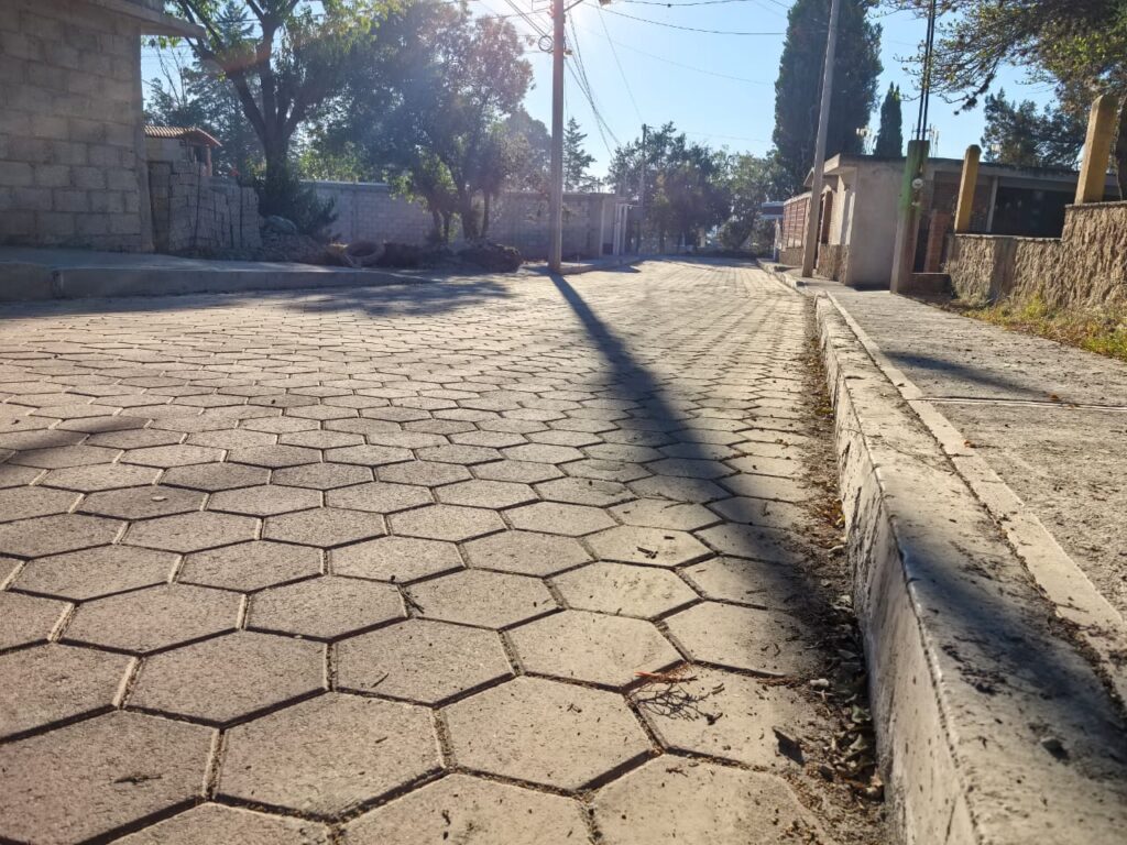 Los trabajos consistieron en construcción de pavimento de adoquín, trazo y nivelación, despalme, relleno y compactación, base hidráulica, cama de arena, colocación de adoquín, cinturones de concreto, renivelación de pozos de visita, brocales, construcción de guarniciones y banquetas, limpieza general de la zona con una meta de 972.04 metros cuadrados y un monto de $909, 350.90. Además de la ampliación de red de agua potable, con la construcción de 72 metros lineales de red y una inversión de $19,557.48.