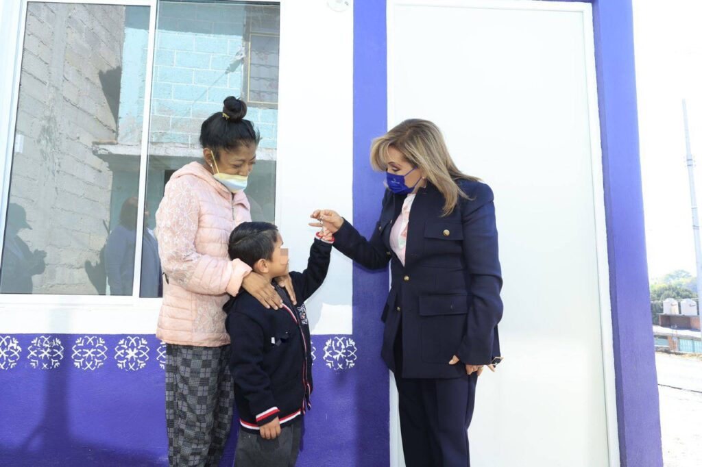 La gobernadora Lorena Cuéllar Cisneros entregó acciones de vivienda en tres modalidades a familias en situación de vulnerabilidad que radican en las comunidades de Atlahapa, Acuitlapilco y Metepec del municipio de Tlaxcala.