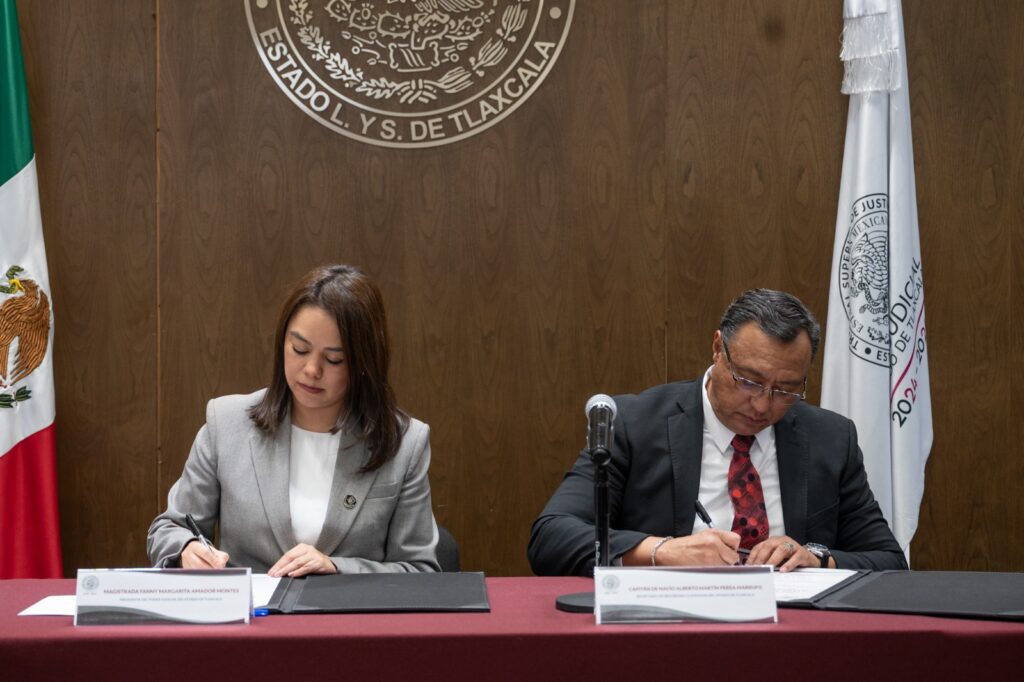 En un paso significativo hacia la consolidación de la seguridad y la justicia en el estado de Tlaxcala, la Presidenta del Tribunal Superior de Justicia del Estado de Tlaxcala, Magistrada Fanny Margarita Amador Montes, y el Secretario de Seguridad Ciudadana del Gobierno del Estado de Tlaxcala, Alberto Martín Perea Marrufo, firmaron un convenio de colaboración institucional.