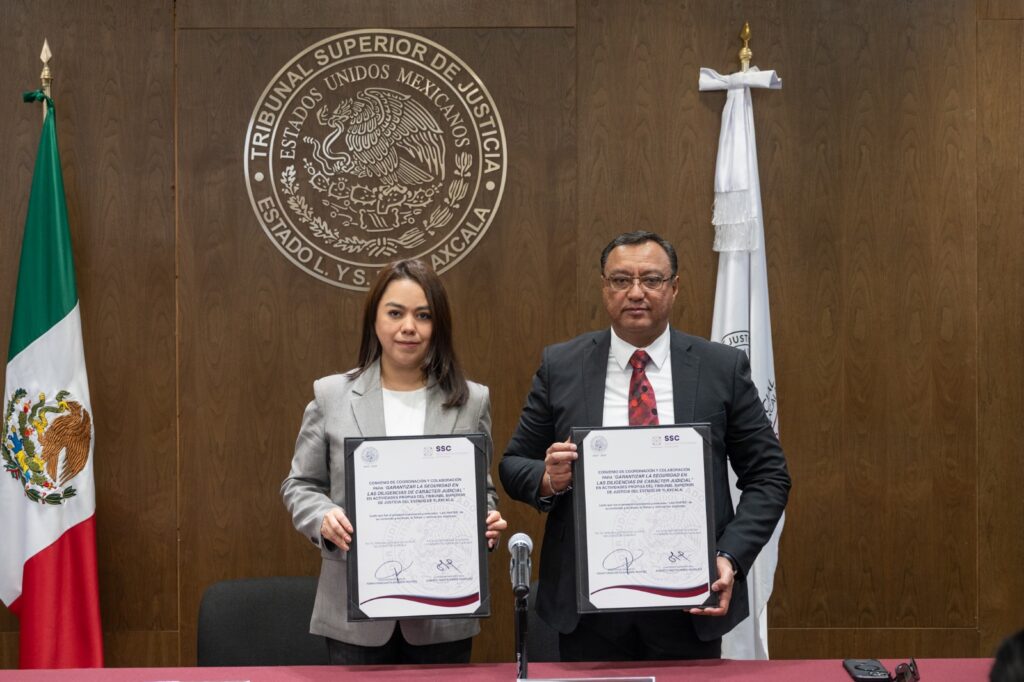 Con este convenio, el Poder Judicial del Estado de Tlaxcala y la Secretaría de Seguridad Ciudadana fortalecen su colaboración interinstitucional y fomentan la confianza ciudadana, al garantizar condiciones de seguridad y el pleno ejercicio de derechos.