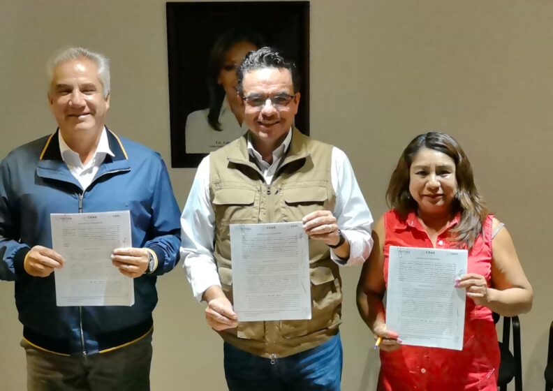 El Presidente Municipal de Yauhquemehcan, David Vega Terrazas y el Dr. Noe Rodríguez Roldán, Titular de la Coordinación de General de Planeación e Inversión del Estado de Tlaxcala (CGPI), encabezaron la firma del convenio de colaboración para la integración del Mapeo e identificación de la red de alcantarillado y descargas del municipio.
