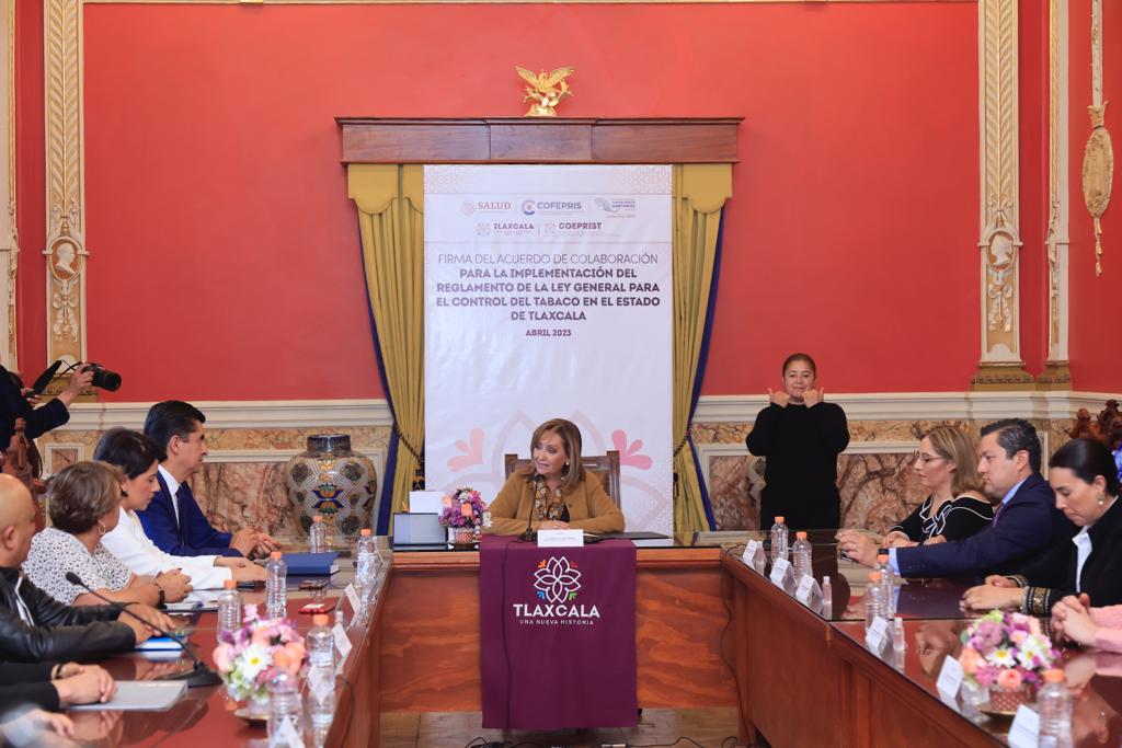 La gobernadora Lorena Cuéllar Cisneros firmó el acuerdo de colaboración para la implementación del Reglamento de la Ley General para el Control del Tabaco en el Estado de Tlaxcala, con el propósito de garantizar espacios públicos libres de humo y evitar afectaciones a la salud de la población.