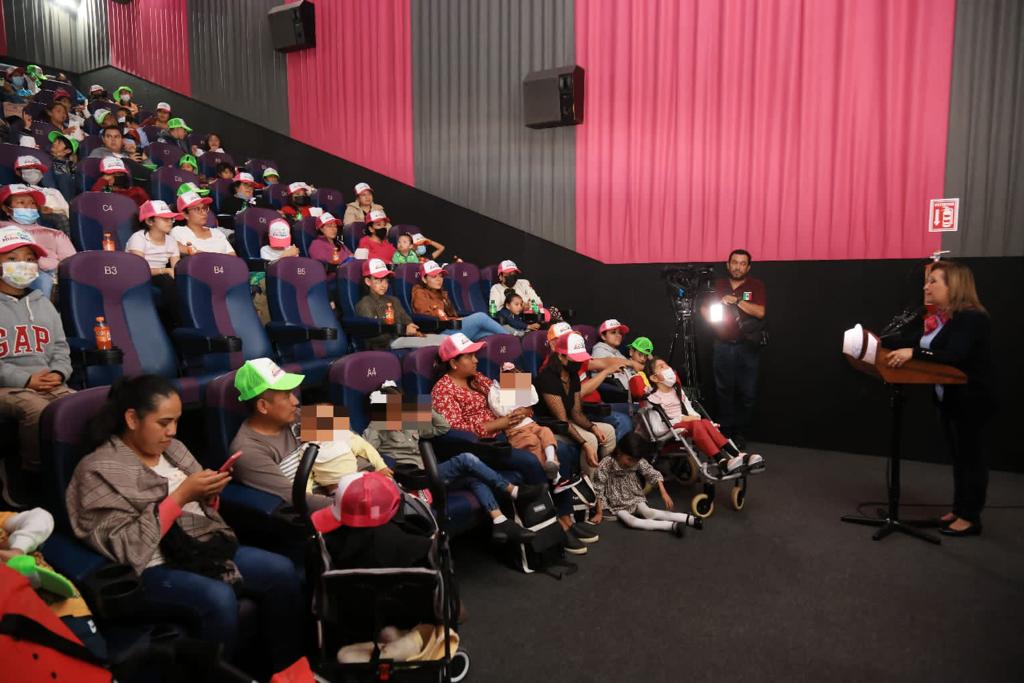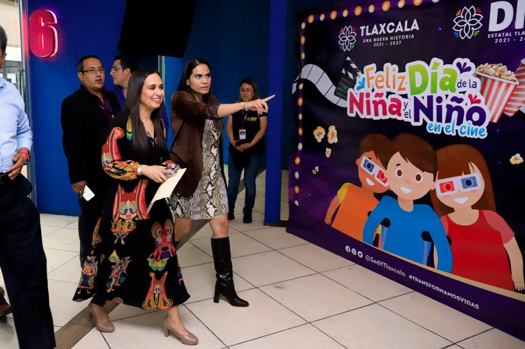La gobernadora de Tlaxcala, Lorena Cuéllar Cisneros y la presidenta honorífica del Sistema Estatal para el Desarrollo Integral de la Familia (Sedif), Mariana Espinosa de los Monteros Cuéllar, marcaron el inicio de los festejos por el Día de la Niña y el Niño, con la primera de 53 funciones de cine para celebrar a la niñez tlaxcalteca en su día.