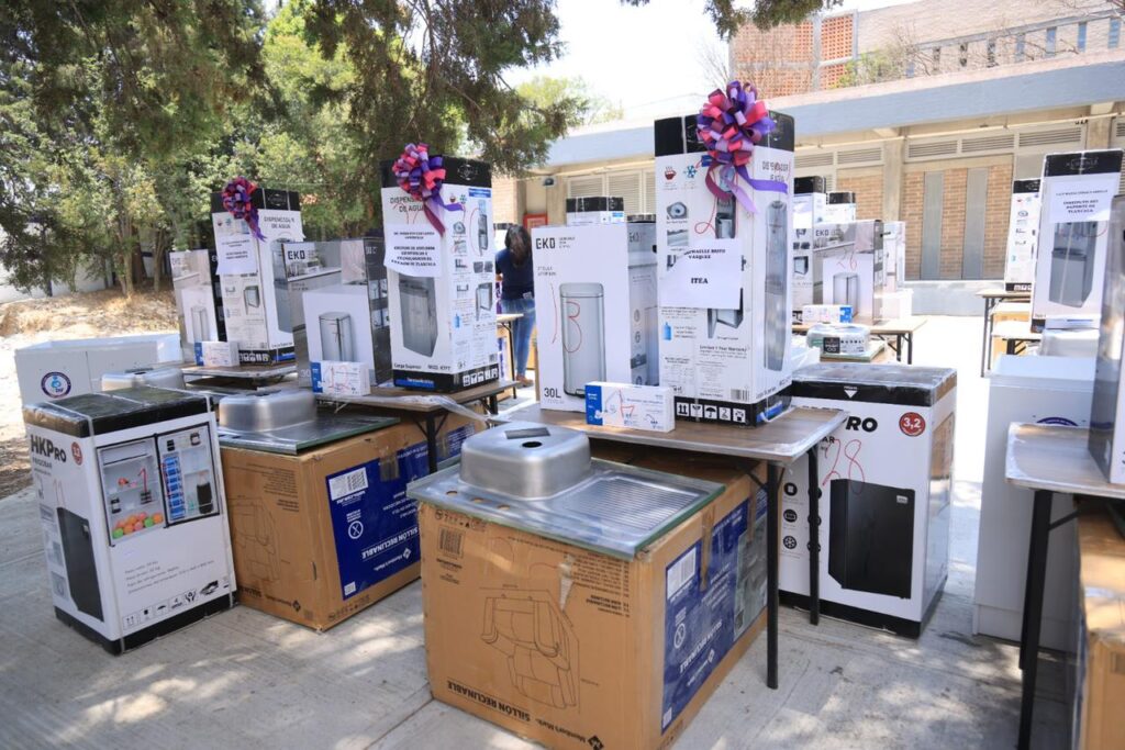Posteriormente, se hizo entrega simbólica a titulares de tres dependencias estatales de los paquetes para la instalación de las salas de lactancia que constan de: sillón reclinatorio, frigobar, mesa individual, kit de fregadero con tarja, dispensador de agua, bote de basura y pizarrón blanco.