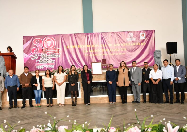 La Magdalena Tlaltelulco, Tlaxcala, 18 de agosto de 2025.- En un emotivo acto cívico, el Gobierno Municipal de La Magdalena Tlaltelulco celebró su 30 aniversario de municipalización con un homenaje póstumo a los municipalistas fallecidos. La presidenta municipal, Rocio Claudia Meléndez Pluma, destacó la visión del gobierno municipal al rescatar los topónimos de cada barrio y colonia, así como apoyar la creación de una canción dedicada al municipio.