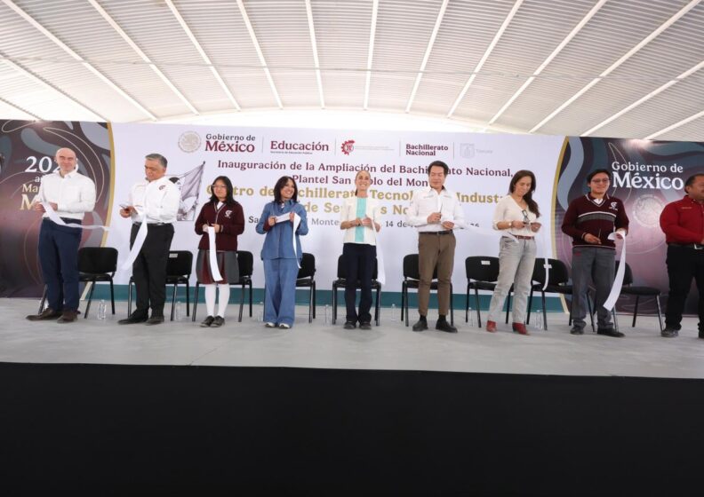 La presidenta de México, Claudia Sheinbaum Pardo, acompañada por la gobernadora Lorena Cuéllar Cisneros, encabezó en San Pablo del Monte la inauguración de la ampliación del Centro de Bachillerato Tecnológico Industrial y de Servicios (CBTIS) 153, acción que forma parte del fortalecimiento de la estrategia Bachillerato Nacional y que permitirá aumentar la matrícula a dos mil estudiantes y contribuir a la meta nacional de generar 150 mil nuevos espacios en educación media superior.