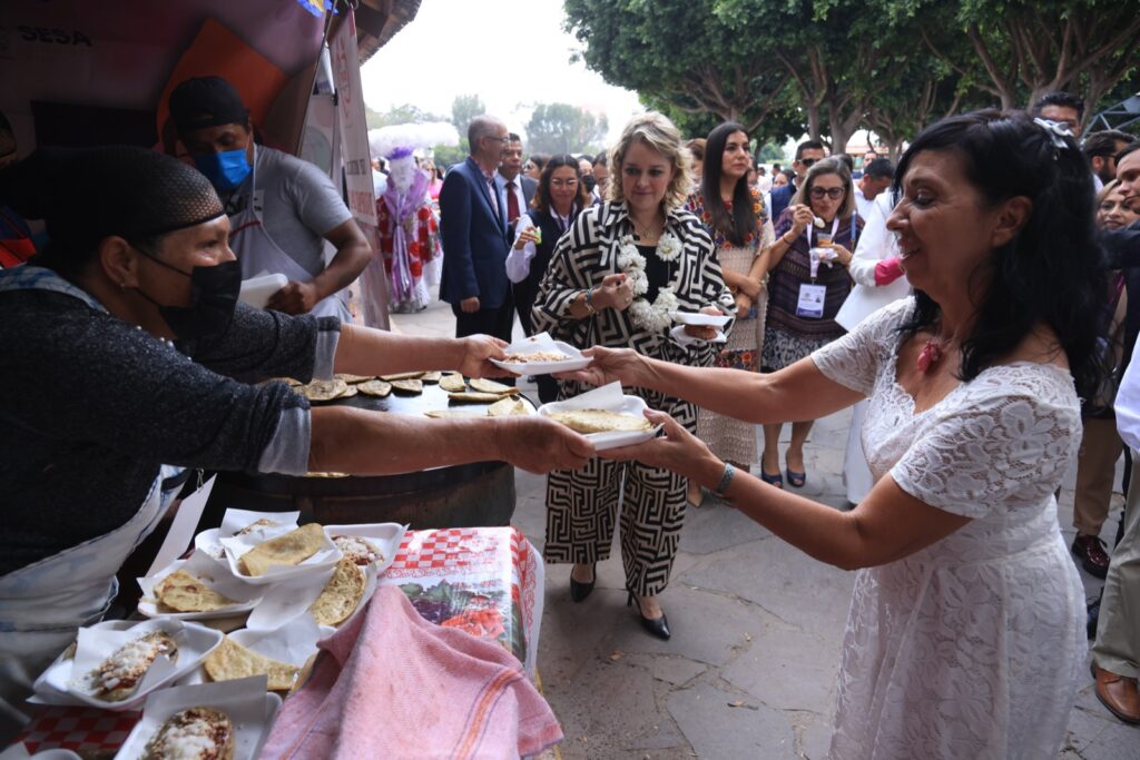 La muestra gastronómica estuvo colocada en la periferia del Lienzo Charro del Recinto Ferial, en la que la gobernadora Lorena Cuéllar Cisneros, acompañada de la titular del Sistema Nacional DIF, Nuria Fernández Espresate, así como titulares de los Sistemas Municipales y Estatales DIF que se dieron cita en el Encuentro Nacional del que es sede Tlaxcala, disfrutaron de los más ricos sabores culinarios.