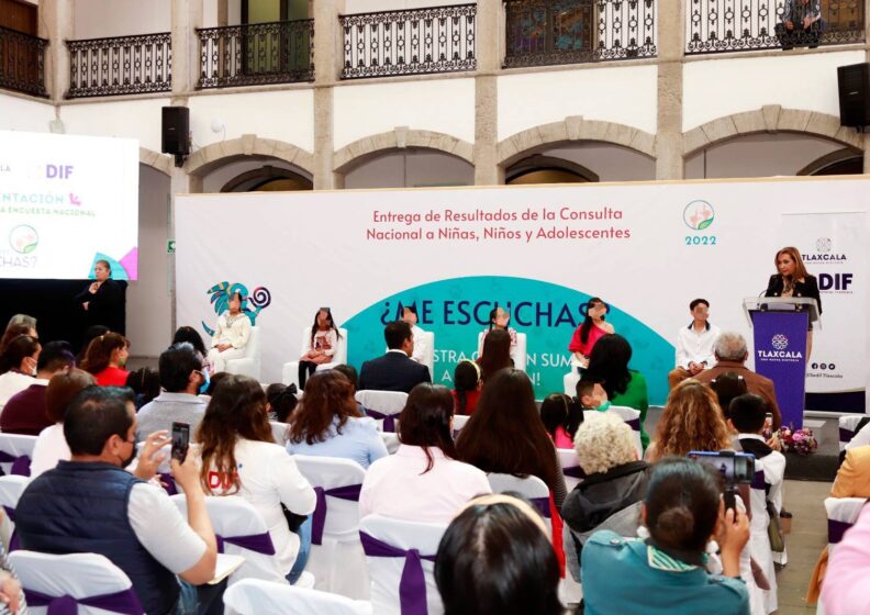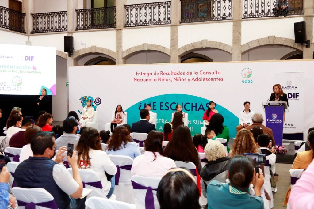 Los Sistemas Nacional y Estatal para el Desarrollo Integral de la Familia presentaron en Tlaxcala los resultados de la Consulta Infantil “¿Me escuchas? 2022”, para la generación de políticas públicas que garanticen el respeto a los derechos de niñas, niños y adolescentes, así como en la elaboración de una agenda sobre las infancias.