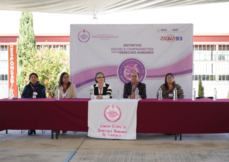 La Secundaria Técnica Núm. 53 “Matlalcueyetl”, ubicada en Loma Florida, municipio de Apizaco, recibió el distintivo “Escuela Comprometida con los Derechos Humanos”, otorgado por primera ocasión por la Comisión Estatal de Derechos Humanos de Tlaxcala (Cedht) a una institución educativa que impulsa una nueva forma de enseñar en favor de la comunidad escolar.