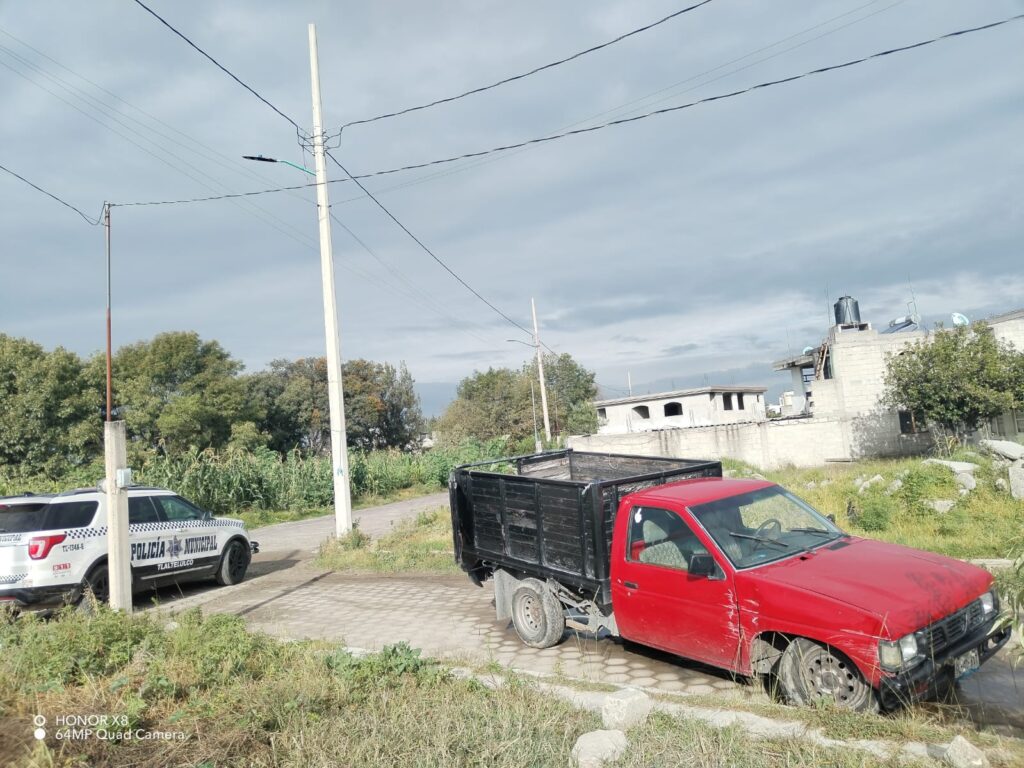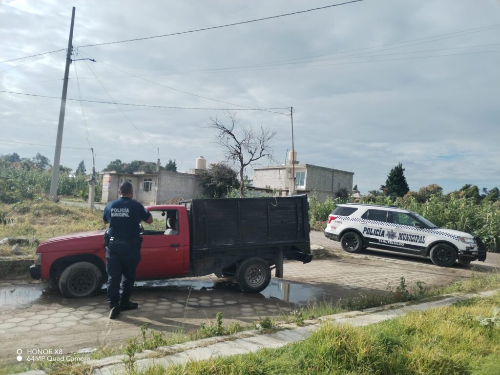 La Policía Municipal de La Magdalena Tlaltelulco recuperó una camioneta Nissan Pick Up modelo 2000 con placas de circulación SL-42-617 del estado de Puebla, que había sido reportada como robada en San Francisco Tetlanohcan.
