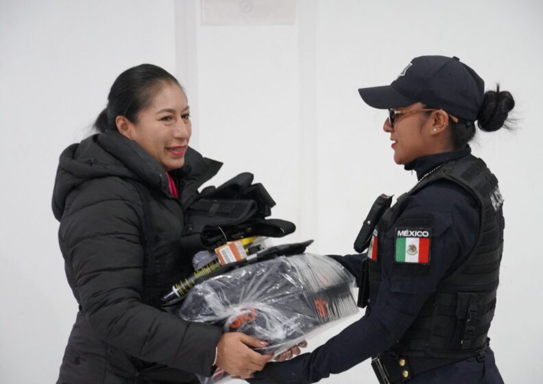 Durante la entrega, los elementos recibieron uniformes completos, que incluyen camisola, pantalón, playera, botas, gorra y fornitura, así como equipo táctico como bastón retráctil, gas pimienta, silbato, lámpara táctica, candados de mano e impermeable.