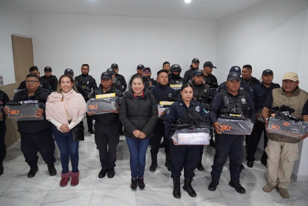 La alcaldesa Rocío Meléndez Pluma entregó uniformes y equipo táctico a los 35 elementos de la Dirección de Seguridad Pública y Vialidad Municipal de La Magdalena Tlaltelulco, fortaleciendo así la labor de los policías en el municipio.