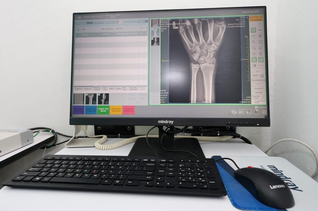 Además, la renovación integral de la sala de Rayos X —ahora digital y con mínima exposición a radiación—; un ultrasonido portátil Doppler color para diagnósticos en campo, un ecocardiógrafo de gama alta con banda de esfuerzo, y el sistema PACS, que permite almacenar estudios y entregar resultados electrónicos directamente en los teléfonos de los pacientes.