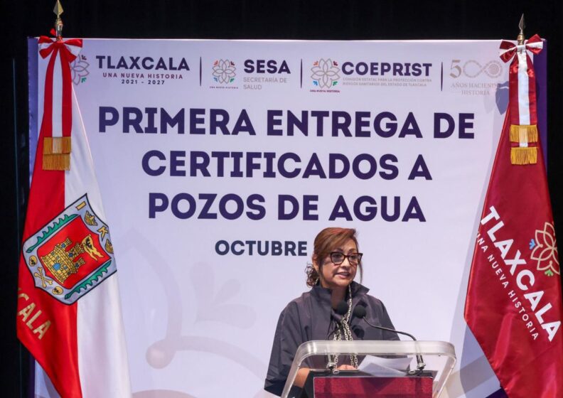 La gobernadora Lorena Cuéllar Cisneros encabezó la entrega de certificados de calidad del agua a presidentas y presidentes de 59 municipios, con lo cual Tlaxcala se consolida como la primera entidad del país en certificar 190 sistemas de abastecimiento público, garantizando agua limpia y segura para uso y consumo humano.
